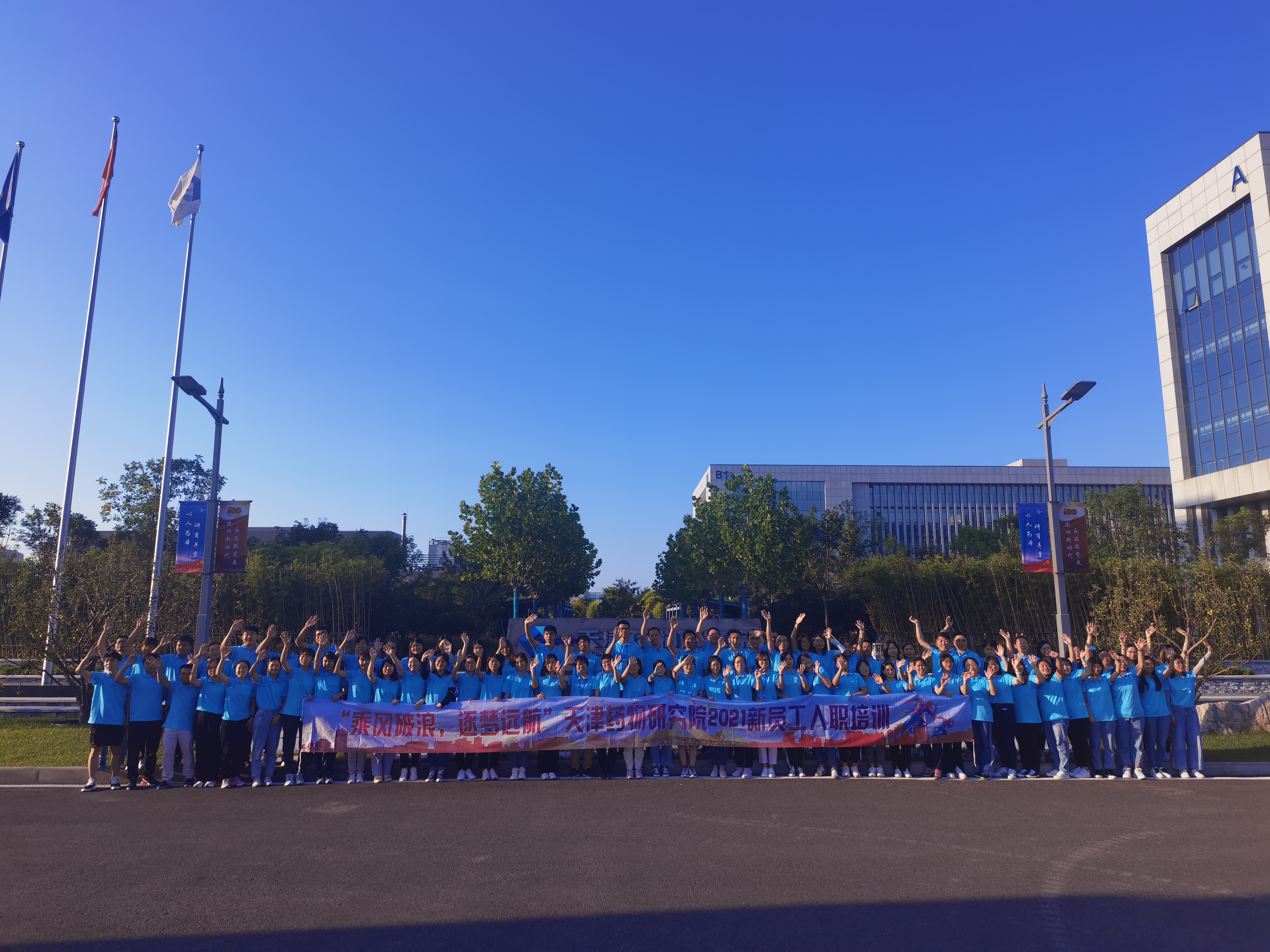 乘风破浪 逐梦远航作者: zhang, zhiyao / 2021年8月24日 ——记天津药物研究院2021年度新员工训练营 天津药物研究院2021年度新员工训练营于8月19日至21日在渤龙湖总部园区内举行,为期三天的训练营就企业文化、公司战略、制度规范及新员工职场心理等进行了系统讲解,为新员工深入了解我院,快速融入团队奠定了基础。首席执行官刘帮民、副总经理贾鹏、总工程师徐为人出席了开营仪式,院部及各下属公司新入职员工130余人参加了此次训练营。 在开营仪式上,首席执行官刘帮民从天津药物研究院的历史积淀、当下转型与未来发展进行了介绍,同时对新员工的加入表示诚挚的欢迎与殷切的期望,总工程师徐为人就公司未来发展战略进行了详尽的解读。训练营期间,新员工们参观了院展馆、本部各研发部门,以及天诚新药评价公司与药业公司,让大家从感官层面对公司有了进一步的了解。人力行政中心、财务管理中心、园区运营中心又就日常工作中涉及的多项管理制度与安全规范进行了详细解读。 作为天津分会场,新员工们还参加了招商局集团企业文化宣讲的线上会议。此外,为了能让新员工更快的适应职场生活,准备了《让热情转化为效能》的自我能力提升课程。最后一天的拓展训练更是将本次新员工训练营推向高潮,年轻人的激情,团队的默契和员工的才艺都得到充分展示。 通过本次活动,新员工们快速地融入了药研院大家庭,彼此相知,彼此信任,大家也更加意志坚定、满怀信心的投入到药研事业当中去。祝愿每一位新员工在天津药物研究院的平台上,充分展现才华,乘风破浪,逐梦远航!
