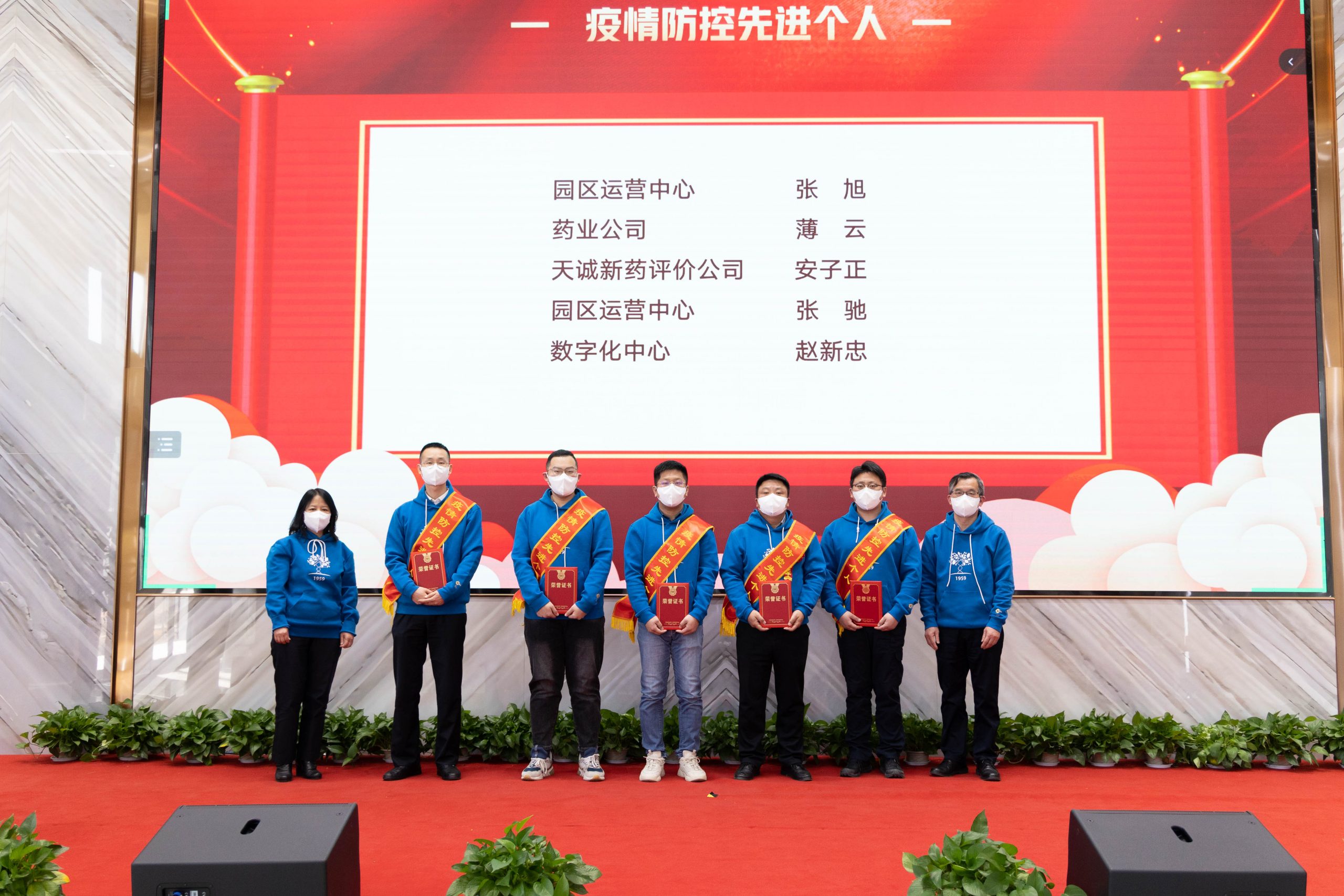 会上,表彰了抗疫期间表现突出的先进个人和团队。在抗击新冠疫情的战役中,药研人展现出了所向披靡、战胜一切困难、勇往直前的勇气、精神和强大力量。张旭等5人获得疫情防控先进个人称号,现场应急处置团队等5个团队获得疫情防控先进团队奖称号。