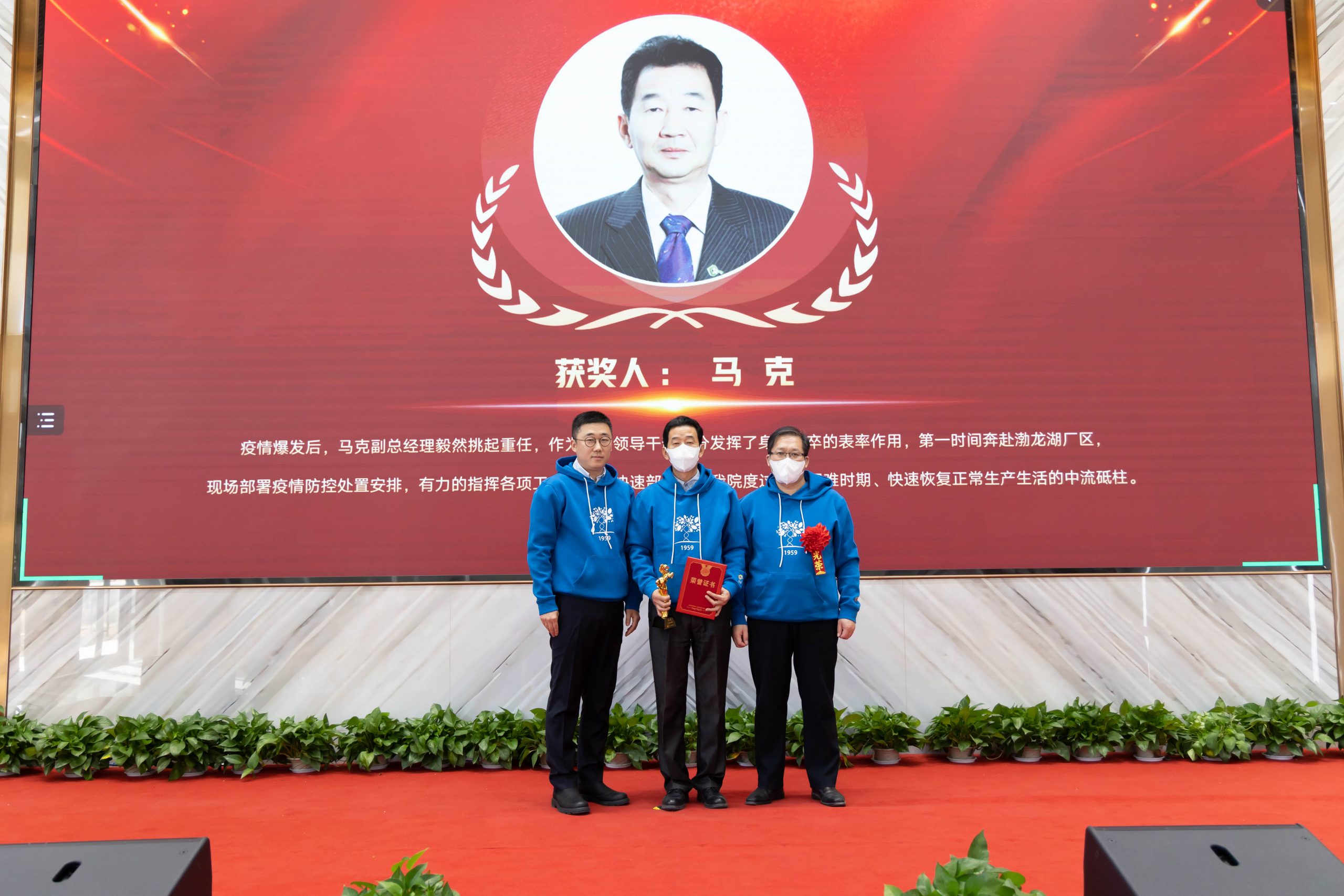 大会还为疫情应急处置小组执行组长、副总经理马克颁发了“一马当先”奖。表彰马克总疫情期间毅然挑起重任,充分发挥党员领导干部的表率作用,为我院疫情防控做出的突出贡献。
