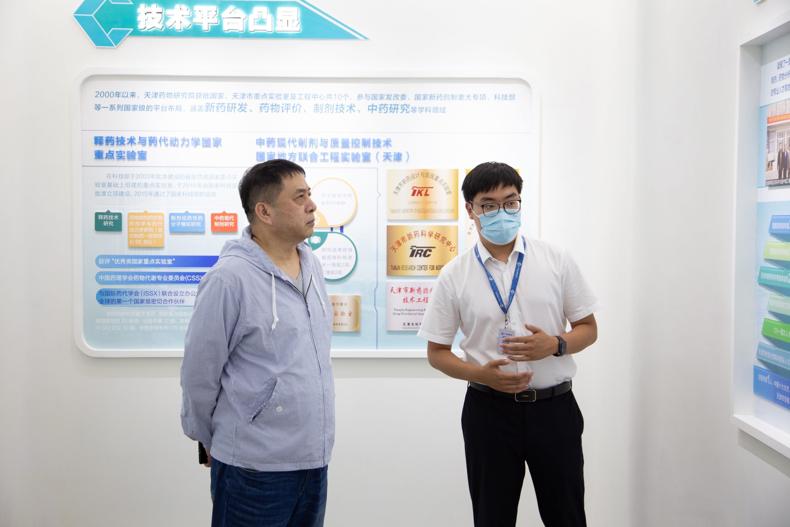 娄竞董事长一行首先参观了药研院展馆,对药研院发展历史、业务领域、创新能力、人才培养、未来发展战略等进行全面了解。