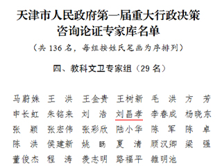刘昌孝院士入选“天津市人民政府第一届重大行政决策咨询论证专家库”名单作者: zhang, zhiyao / 2022年8月25日 近日,天津市政府公布了“天津市人民政府第一届重大行政决策咨询论证专家库名单”,中国工程院院士、天津药物研究院终身首席科学家刘昌孝院士入选。 天津市人民政府为充分发挥各领域专家在重大行政决策工作中的作用,进一步推进重大行政决策工作科学化、民主化、法治化,根据《重大行政决策程序暂行条例》和《天津市重大行政决策程序规定》等有关规定,市人民政府聘任于兵、马蔡琛等136人为天津市人民政府第一届重大行政决策咨询论证专家库专家,聘期五年。 刘昌孝院士简介 刘昌孝院士是我国著名药代动力学专家,现任天津药物研究院名誉院长、终身首席科学家、学术委员会主任,释药技术与药代动力学国家重点实验室主任,中国药典委员会顾问,中国药学会常务理事。刘昌孝院士从事药代动力学研究50多年,建立了国内第一个药代动力学实验室,第一次将药代动力学研究用于新药评价,出版了国内第一本药代动力学专著,建立了国内第一个部级药代动力学重点实验室和第一个国家药代动力学重点实验室;承担50多项国家和省部重大研究项目,带领完成近150个新药的药代动力学研究,获得国际、国家和省部级科技成果奖励50余项,在国内外发表论文400余篇,出版中英文学术专著38本。刘昌孝院士为我国药代动力学、药物评价学、中药现代化发展和生物医药发展战略研究作出了卓越贡献。