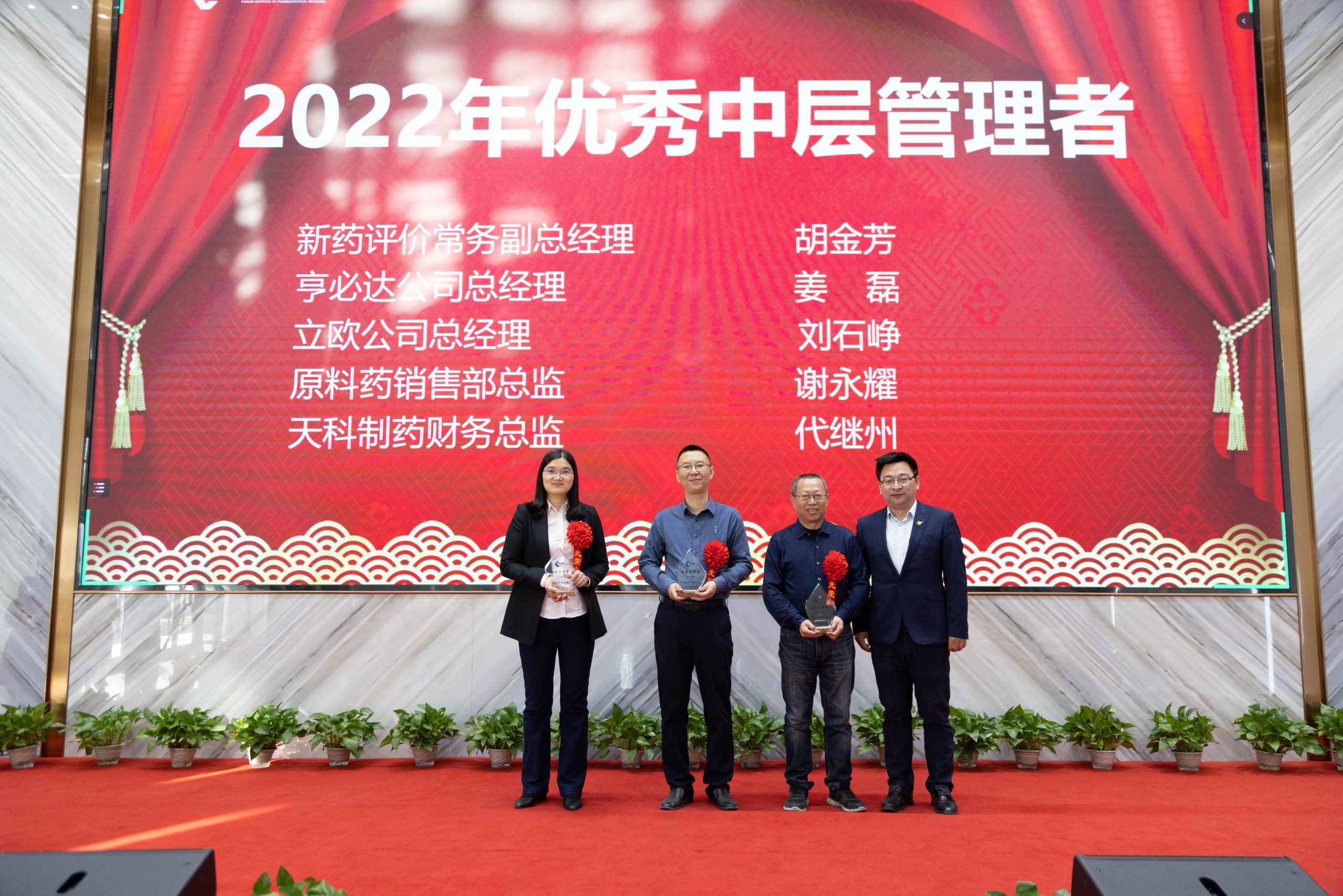 优秀员工代表徐芳、优秀管理者代表姜磊、突出贡献团队代表胡金芳发表获奖感言,代表所有获奖员工,感谢药研院给予的平台,感谢领导、同事的支持和帮助,并表示在新的一年里将会更加努力拼搏、锐意进取,为实现百年药研院、世界药研院的奋斗目标贡献力量!