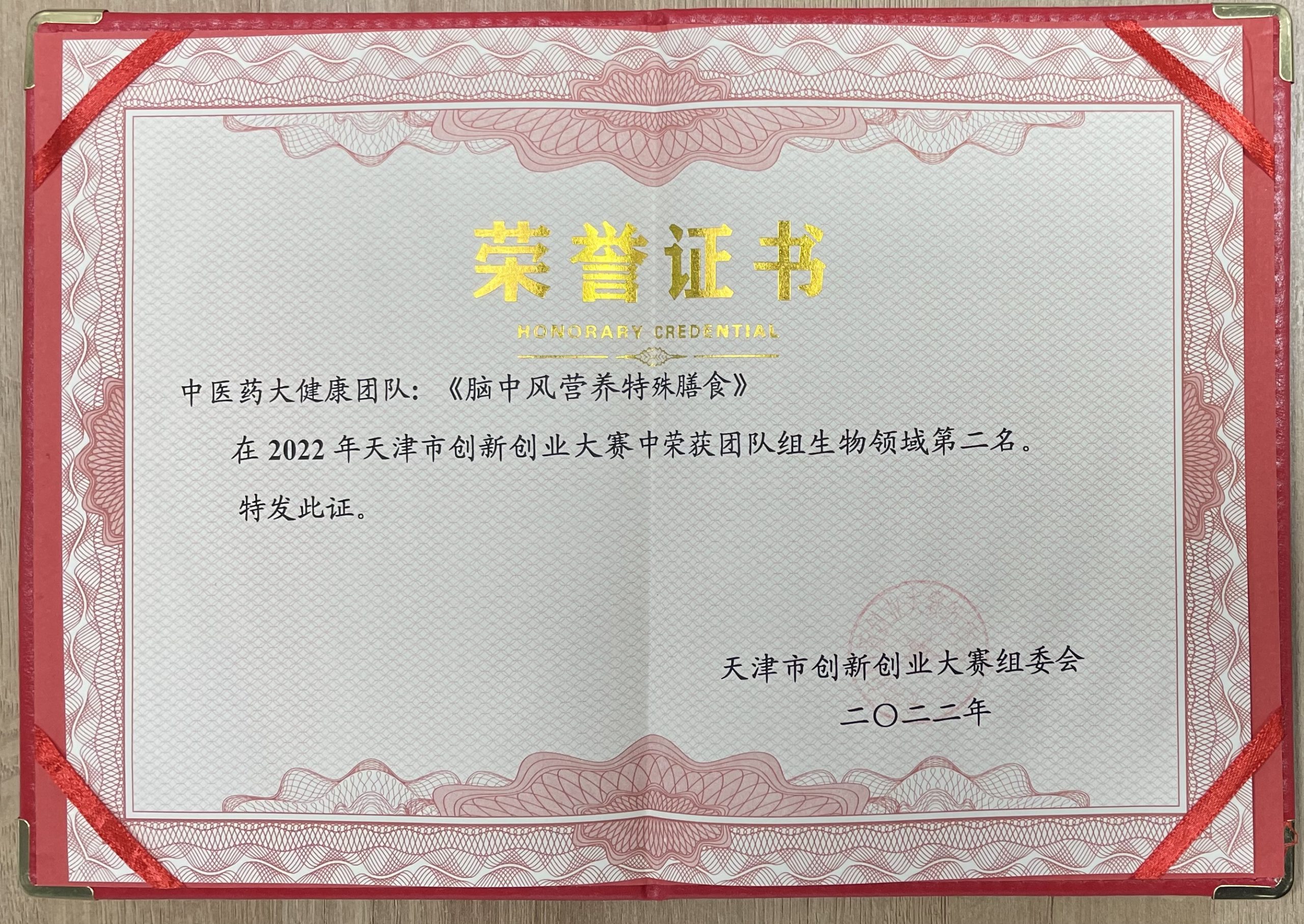 近日,由天津市科技局、天津市财政局、天津市教委、中共天津市委网信办和天津市工商业联合会联合主办的“2022年天津市创新创业大赛”正式落下帷幕,天津药物研究院中医药大健康团队参赛项目“脑中风营养特殊膳食”荣获团队组生物领域第二名。