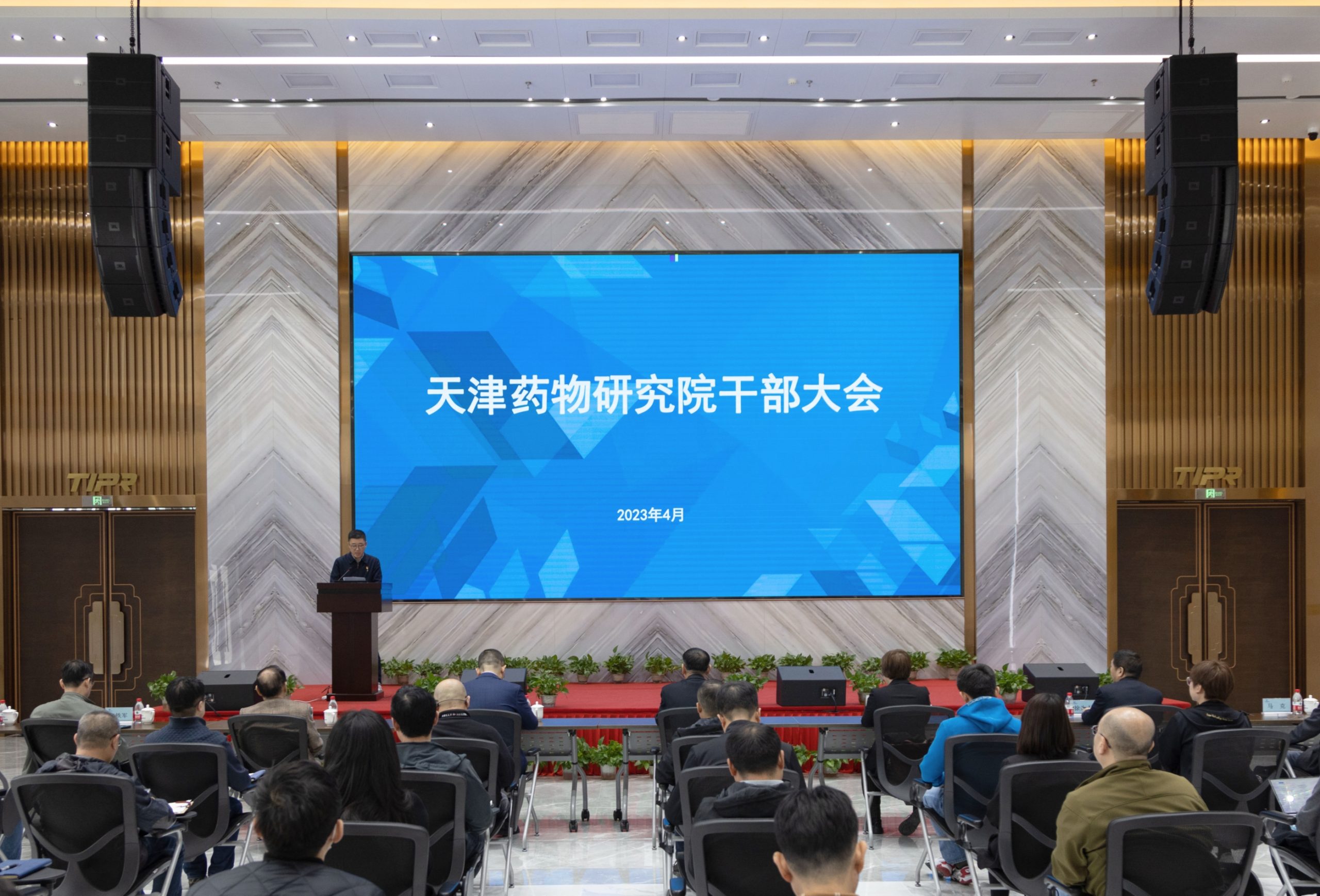 2023年4月23日上午,天津药物研究院有限公司(以下简称“药研院”)召开干部大会,药研院党委班子、经营管理团队、科学家团队、院部门负责人、下属公司负责人、院科研技术骨干及实验室相关人员等50余人参加会议。