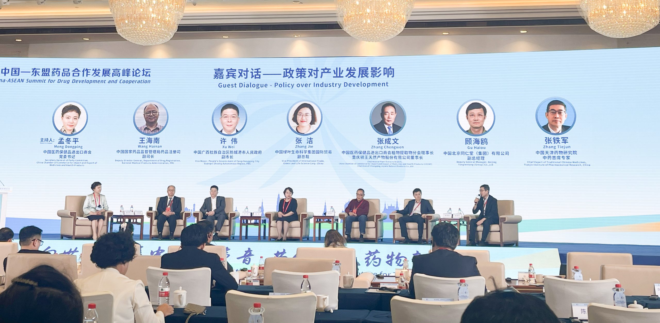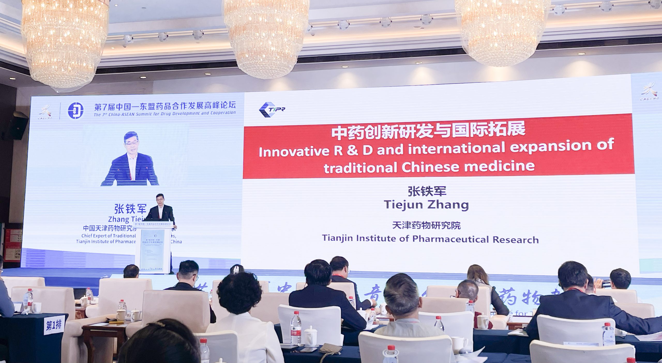 天津药物研究院中药首席专家张铁军研究员受邀参加第7届中国-东盟药品合作发展高峰论坛作者: zhang, zhiyao / 2023年10月7日 9月14-15日,第7届中国—东盟药品合作发展高峰论坛在广西防城港市召开。天津药物研究院有限公司(以下简称“药研院”)中药首席专家张铁军研究员受邀参加高峰论坛。 由国家药品监督管理局和广西壮族自治区人民政府共同主办,广西壮族自治区药品监督管理局、广西壮族自治区防城港市人民政府、中国食品药品国际交流中心、中国医药保健品进出口商会承办的第7届中国—东盟药品合作发展高峰论坛于9月14-15日在广西防城港市召开。药研院中药首席专家张铁军研究员受邀参加高峰论坛,做学术报告《中药创新研发与国际拓展》,并参加“嘉宾对话-政策对产业发展的影响”。 张铁军研究员在《中药创新研发与国际拓展》学术报告中阐述了中药传承、创新、发展的总体思路,并从中药新药研发、中药大品种二次开发、中药高质量发展、中药国际拓展等方面进行了细致分析。 在“嘉宾对话-政策对产业发展的影响”活动环节,张铁军研究员作为科技代表,与药品监管代表、地方政府代表、制药企业代表等共同探讨了政策对产业发展的影响。 药研院继2018年与广西中医药大学等联合组建“中国-东盟传统药物研究国际合作联合实验室”后,2020年申报的国家中医药管理局 “中国-东盟区域特色创新研发国际化合作基地”顺利获得批准,标志着药研院-中药国际化工作迈上新的台阶。此次张铁军研究员受邀参加第7届中国-东盟药品合作发展高峰论坛对推进中药品牌建设和业务拓展具有推进作用。