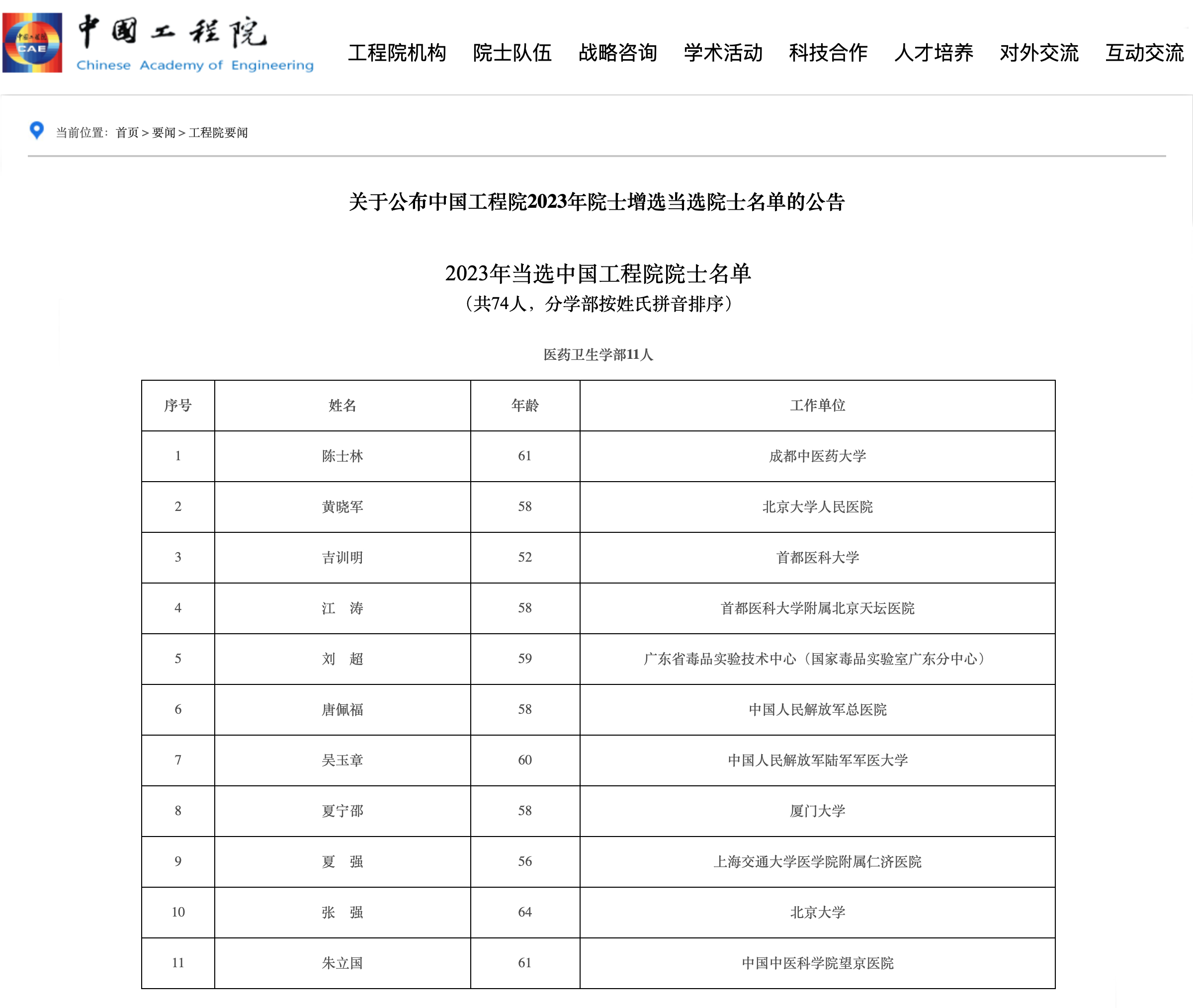 2023年11月22日,中国工程院2023年院士增选名单正式公布,共选举产生74位中国工程院院士。