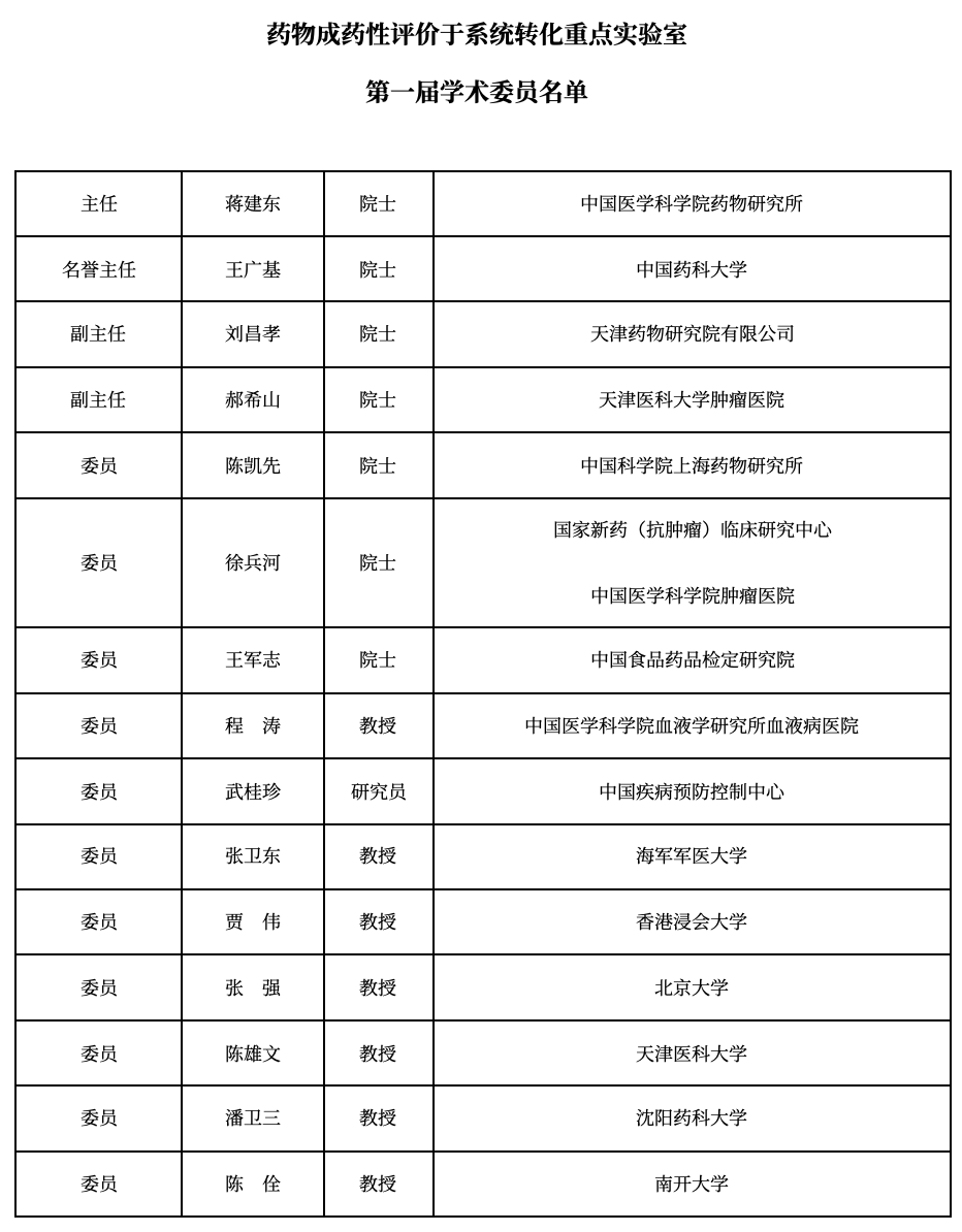 2023年5月,张强院士受聘为药物成药性评价与系统转化重点实验室学术委员会委员。