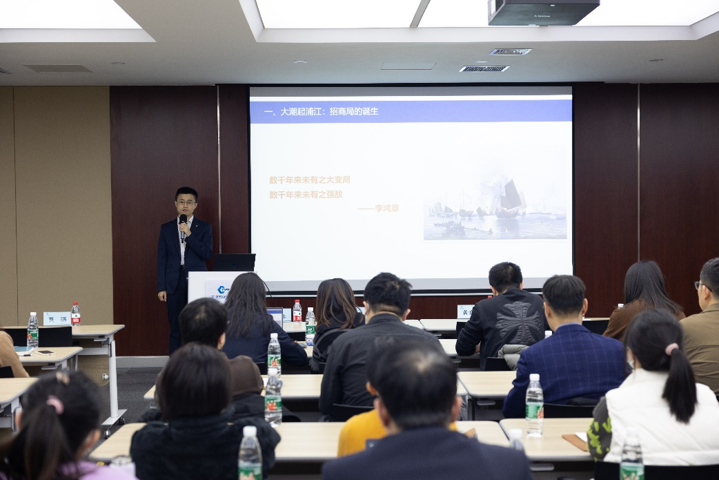 贾磊以《新时代招商局信条》为主题,从信条出台背景、起草过程、具体内容三个方面进行讲解。回溯历史,展望未来,结合集团“第三次创业”、科技创新等内容对信条逐一进行深入解读,展现了招商局百年民族企业特色的价值追求,阐述了招商局在新时代新征程的企业使命。