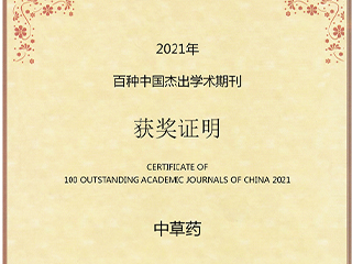 《中草药》杂志荣获“百种中国杰出学术期刊”