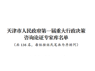 近日,天津市政府公布了“天津市人民政府第一届重大行政决策咨询论证专家库名单”,中国工程院院士、
