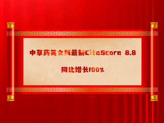 中草药英文版最新CiteScore 8.8,同比增长100%